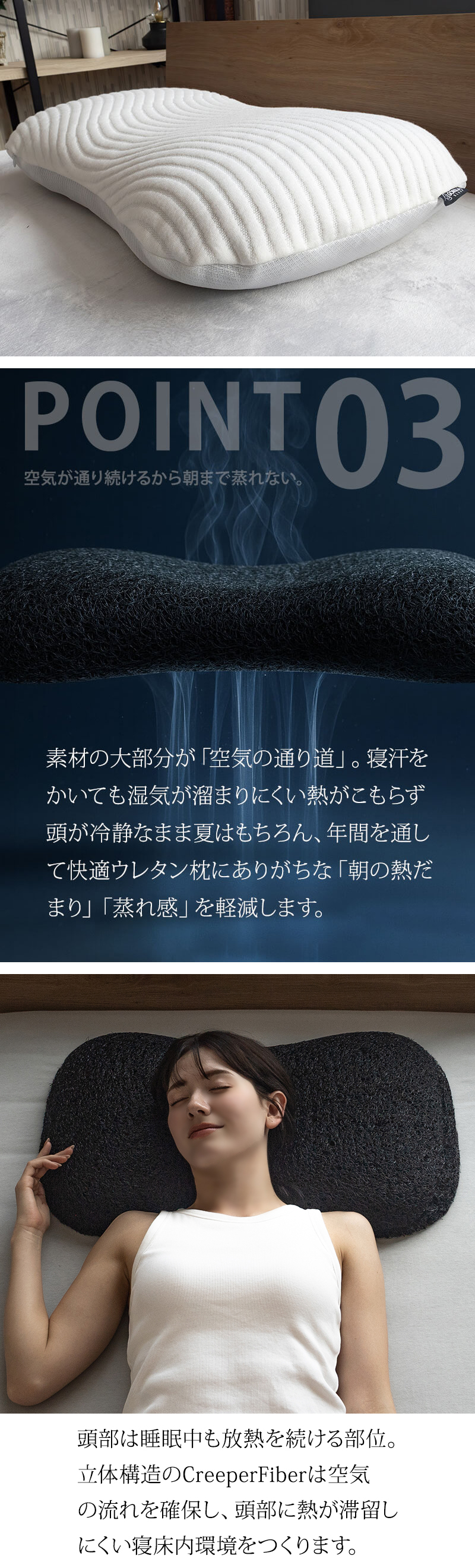 素材の大部分が空気の通り道になっているため、寝汗を書いても蒸れ感を軽減します。
