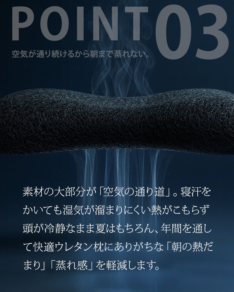 素材の大部分が空気の通り道になっているため、寝汗を書いても蒸れ感を軽減します。