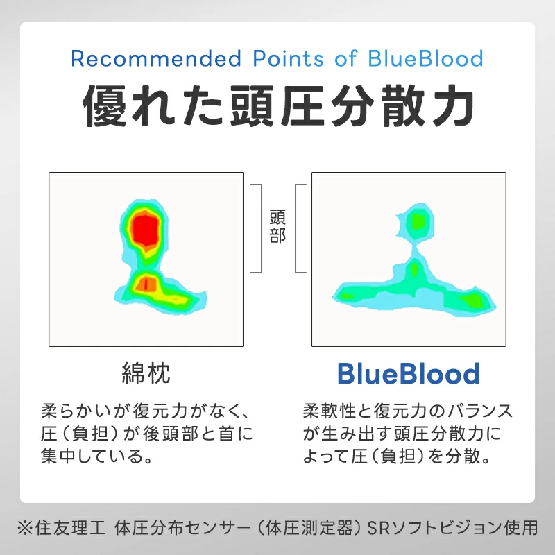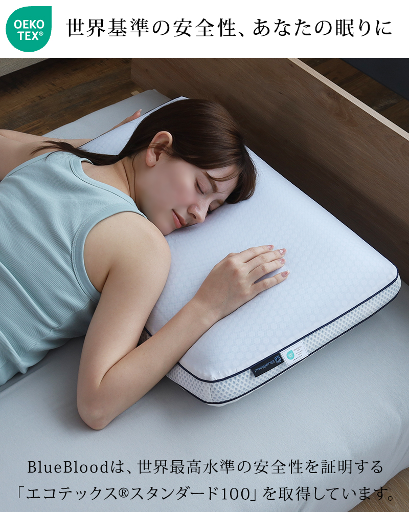 枕本体は絶対に洗濯しないでください。BlueBlood素材に使用しているウレタン素材は、水分を含むと排出されにくい特性を持っているため、一度洗濯されてしまうとその後の使用ができなくなってしまいます。