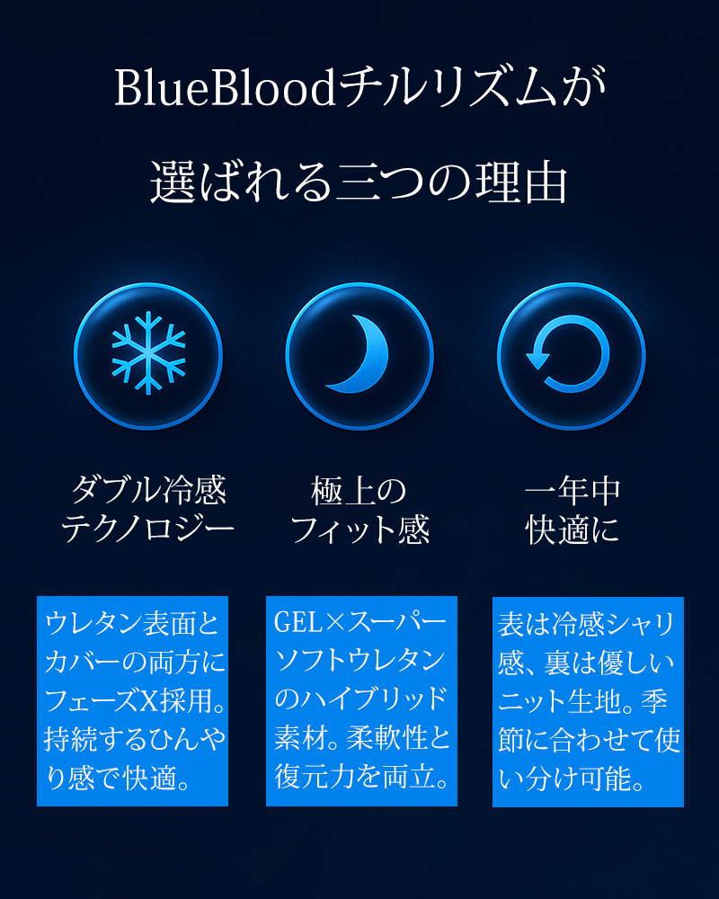 快適な温度に自動で調整するヒンヤリ冷感枕!夏だけじゃなく年中使えるリバーシブル仕様 接触冷感枕[チルリズム]