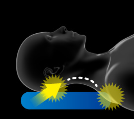 ◎ ちょうどよい高さの枕頭の重さが首・肩にかからず頸椎が自然なカーブを描く