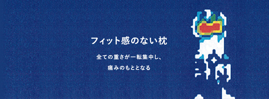 枕が高すぎると頭の重みが寝ている間じゅうずっと頸椎や肩にかかり続けます。逆に低すぎる枕もまた頸椎に負担をかけ、首の筋肉・肩の筋肉にも負担がかかります。体への負担なく頭部の重みを支えるには、ちょうどよい高さをキープし続けることが大切なのです。