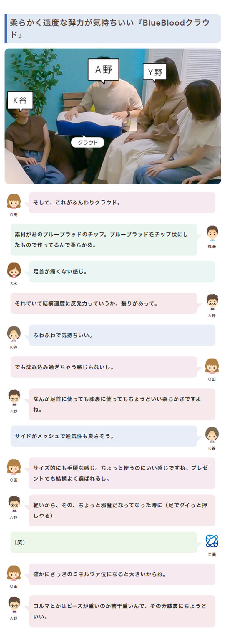 使う方を選ばないハイブリッドGEL素材のBlueBloodをチップ状にした、まるで雲のようなふんわり気持ちいい質感の足枕。コンパクトで場所を選びません。