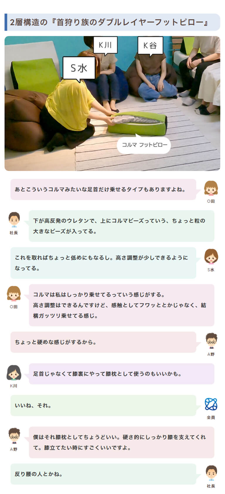 程よい硬さとクッション性のあるコルマビーズと高反発ウレタンの2層構造の足枕。膝枕としてもしっかり足を支えます。