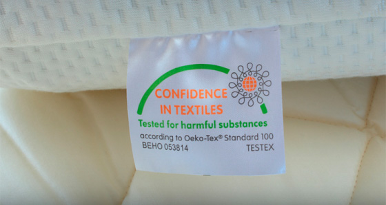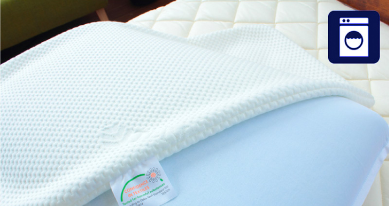 ブルーブラッドは、「すべての原料、生産工程において人体に有害な物質を使用していない」という製品にだけ与えられる「エコテックススタンダード100」を取得しております。この基準は中材だけでなく、付属のカバーやカバーについたファスナーにまで審査が及び、また、日本のみならず世界的に定められた厳しい基準をクリアした製品にだけ与えられており、安全・安心の証です。