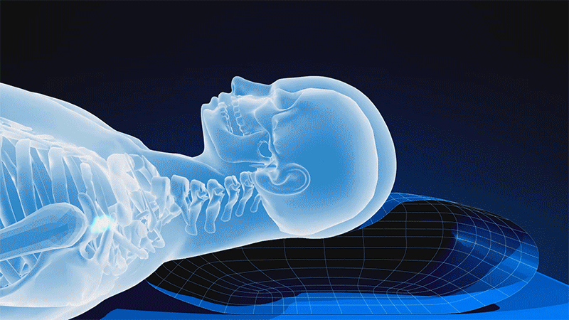 ブルーブラッドの枕素材は、頭の重みを吸収する柔軟性とそれをふんわりと持ち上げる復元力を兼ね備えています。一見相反するこの2つの力。この力をバランスよく持ち合わせていることで、 自然な寝姿勢を崩すことなく受け止め、頭の重さから肩や頸椎を解放することができるのです。